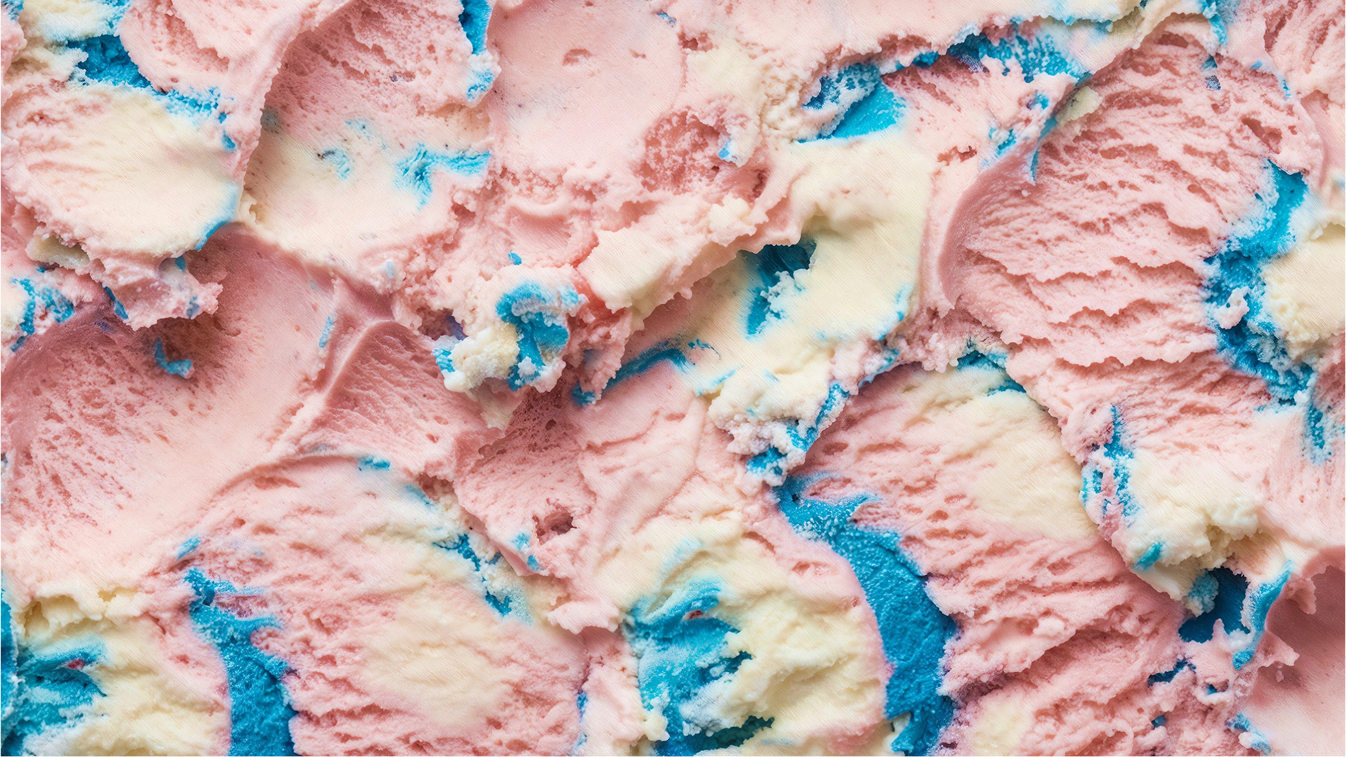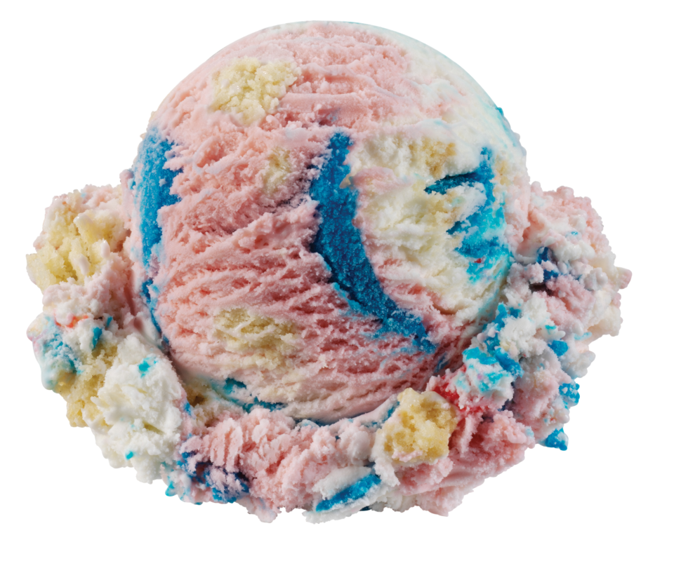 Reconstituted Skimmed Milk Powder, Cream (Milk), Blue Cream Ripple (14%) [Sugar, Glucose Syrup, Water, Cream (Milk), Thickener (Hydroxypropyl Distarch Phosphate), Flavouring, Colour (Brilliant Blue FCF), Gelling Agent (Pectin)], Sugar, Glucose Syrup, Strawberry Puree (3%), Red Crunch Pieces (3%) [Sugar, Cocoa Butter, Glucose Syrup, Elderberry Concentrate, Acidity Regulator (Citric Acid), Natural Flavour], Sponge Cake Pieces (3%) [Sugar, Wheat Flour (Wheat, Calcium Carbonate, Iron, Niacin, Thiamine), Salted Butter (Butter (Milk), Salt), Whole Egg Powder, Sweetened Condensed Milk (Milk, Sugar), Salt, Raising Agent (Sodium Bicarbonate)], Whey Powder (Milk), Emulsifier (Mono-and Diglycerides of Fatty Acids), Stabilisers (Guar Gum, Locust Bean Gum, Xanthan Gum), Flavourings, Colours (Annatto Norbixin, Beetroot Red).